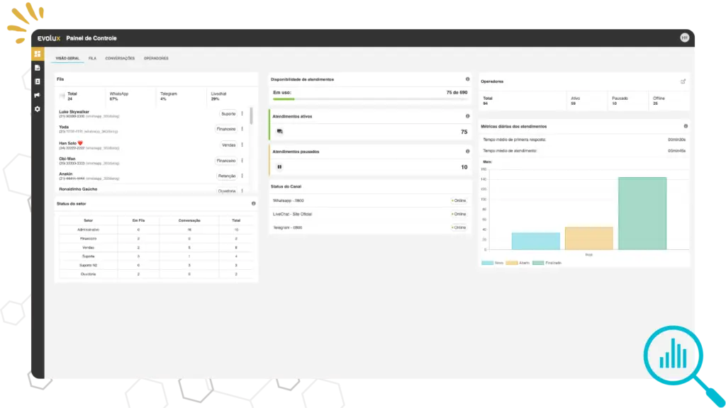O Evolux Chat é a ferramenta de comunicação por texto, que permite o atendimento de canais como Telegram e WhatsApp.